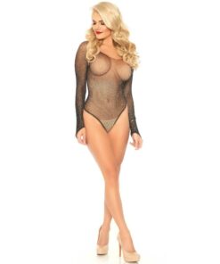 LEG AVENUE – CRYSTALIZED LONG SLEEVE BODYSUIT BLACK