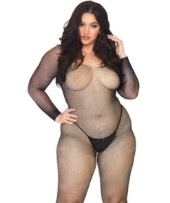 Crystalized seamless fishnet long sleeved bodystocking manufactured by the prestigious lingerie brand, Leg Avenue. Increase your feminity getting an exclusive piece of seduction sensuality and elegance.Â