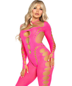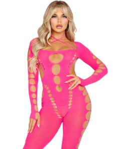 LEG AVENUE – PINK OPEN BACK BODYSTOCKING ONE SIZE