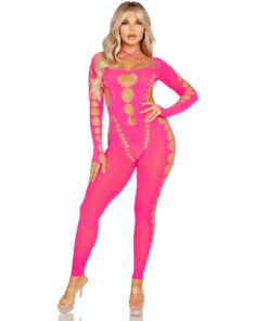 LEG AVENUE – PINK OPEN BACK BODYSTOCKING ONE SIZE
