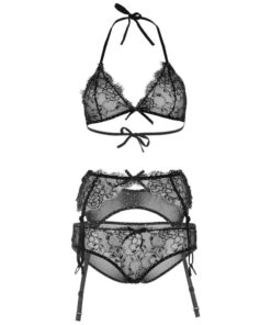 3 PC Eyelash lace rhinestone bra top, full back panty, and matching scalloped lace garter belt manufactured by the prestigious lingerie brand, Leg Avenue. Increase your feminity getting an exclusive piece of seduction sensuality and elegance.Â