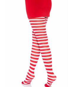 The specific design of these stockings stands out for the red and white stripes that run the entire length of the leg. The red and white stripes add an element of color and pattern that breaks up the simplicity of nylon, creating a dynamic and attractive visual effect. This striped pattern can vary in thickness and arrangement, allowing options for different tastes and styles.