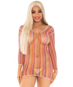 Zig zag rainbow net long sleeve mini dress manufactured by the prestigious lingerie brand, Leg Avenue. Increase your feminity getting an exclusive piece of seduction sensuality and elegance.Â