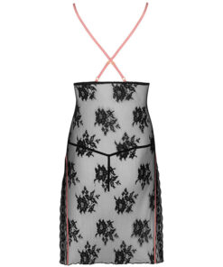Karonin Dubarry Collection is a set consisting of a sensual nightgown and matching black thong. The set is made of soft, openwork lace and additionally decorated with a subtle powder pink ribbon tied at the bust. Such a contrasting combination of sweet pink and fierce black makes the outfit add courage and self-confidence. In turn, the material of the set ensures that its user feels as good as possible in her own body. The lace is made of pleasant-to-touch polyamide, which does not scratch and adapts well to the shape of a woman’s figure.