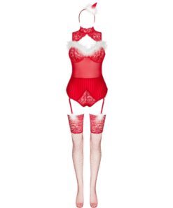 Finally, the themed headband, with classic seasonal details, adds a fun and charming touch that perfectly completes the set. Ideal for special celebrations, themed photoshoots, romantic surprises, or simply for enjoying the Christmas spirit with a bold and festive twist, this three-piece set combines comfort, beauty, and the unique charm of the holiday season.