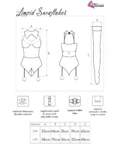 Made from a fabric composed of 90% polyamide and 10% elastane, this set offers a soft, silky, and highly elastic texture that adapts delicately to the body. Its composition ensures a snug and comfortable fit, allowing freedom of movement and a pleasant feel on the skin throughout wear. Available in sizes S/M and L/XL, it fits different body types firmly yet flexibly. The bodysuit, with its sensual and festive design, enhances the figure with an attractive and elegant style. The matching stockings, featuring a comfortable and elastic finish, complement the look by adding an extra touch of Christmas sophistication.