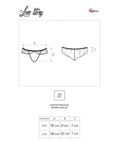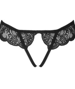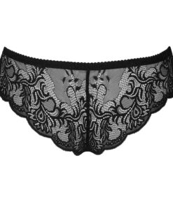 The offered model is extremely sensual and sexy. The panties are very impressive and tempt with translucent lace. The lace is solid, of excellent quality, beautifully made. The material is also soft and delicate and adapts perfectly to the shape of the body, subtly emphasizing it. The panties have a slit in the crotch. Their characteristic feature is a bold front and an elegant, beautifully finished back. This is definitely lingerie for special occasions, evening wear. This model is an ideal proposition for women who appreciate classic black combined with a fancy cut and sensual lace. However, the fancy form of the panties does not make them uncomfortable, on the contrary, they are extremely comfortable to wear and airy. Additionally, 2 sizes help: S/M and L/XL, thanks to which we can choose the perfect underwear size for ourselves. This model can be a nice gift for a special occasion: an anniversary, Valentine’s Day or St. Nicholas Day, although opportunities to give a gift happen almost every day.Â