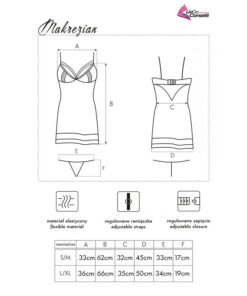 Set consisting of a T-shirt and thong in a timeless black color. The outfit is based on a sensual combination of elegant lace and mysterious mesh, which simultaneously covers the body and attracts the eye. The thong from the set has a classic cut, which is only a background for a phenomenal nightgown with a sophisticated cut. The model stands out thanks to decorative stripes on the neckline