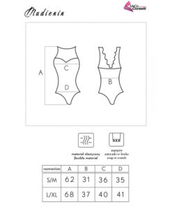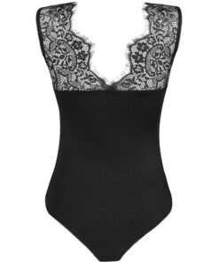 The Mudienin model is a universal black bodysuit that will work not only in the bedroom, but also as part of an everyday outfit. The design uses sensual and feminine lace and smooth, subtly shiny material, which together guarantee an effect of chic and sensuality. The bodysuits have a classic cut with a cutout at the back. They reveal the buttocks while covering the bust area with subtle lace. The lace accent also appears on the back of the costume, which draws the eye to women’s shoulder blades and arms.