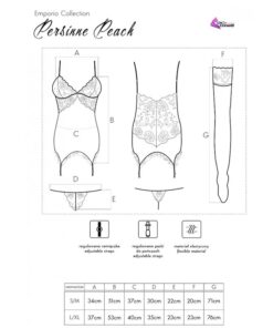 The Persinne Peach Emporio collection is a luxurious three-piece sleepwear set containing a corset. of lace fabric, lace thongs and stockings with a belt. It is the perfect combination designed for both special occasions and everyday wear, which should undoubtedly not be missing in every woman’s wardrobe.