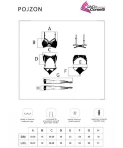 Pojzon is an excellent choice for every woman. This unique set of women’s underwear is a combination of elegance and sensuality. It consists of a black bra, panty, garter belt and stockings that perfectly complement the whole look.