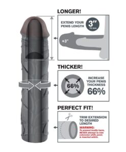 The Mega 3″ Extension is a customizable extension that can be easily trimmed at the base for a perfect fit. It’s super-stretchy to accommodate most sizes and snug enough to help you last longer. Your partner will enjoy deeper penetration with the 3″ extension at the tip, while the ultra-lifelike shaft makes you 66% thicker all around. The soft Fanta Flesh material feels just like a second skin, giving you the length, girth, and confidence you need to satisfy your lover.