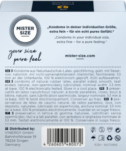 MISTER SIZE gives you a completely new sensation during sex while offering optimal safety. All our MISTER SIZE condoms comply with DIN EN ISO 4074:2002 and are subject to thorough testing. Having a condom with optimal safety generates confidence and security that allows both partners to relax and let themselves go completely during the sexual act.