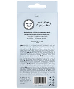 With MISTER SIZE 64 you have the condom that gives you a pleasant feeling in every sense. Pinching, pinching and the feeling that your manhood is being suffocated are a thing of the past! From now on, pure pleasure begins. Just before making love, a wonderful union is created by easily pulling the condom onto your strong and robust penis – a union that will create wonderful moments of sensual pleasure. Easy and perfect fit with your personal condom size No matter what has happened in the past, a condom can and should always fit perfectly! With your personal size, your MISTER SIZE condom warmly embraces your penis like a second skin and makes a natural feeling possible. You can now relax and finally let yourself go completely during sex.