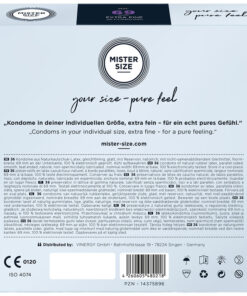 MISTER SIZE gives you a completely new sensation during sex while offering optimal safety. All our MISTER SIZE condoms comply with DIN EN ISO 4074:2002 and are subject to thorough testing. Having a condom with optimal safety creates confidence and security that allows both of you to relax and let yourself go completely during sex.