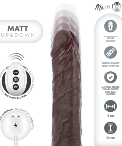 Let yourself be carried away by an intense and realistic experience with MATT, the star dildo of the MR INTENSE collection. Designed for lovers of powerful and deep pleasure, this realistic vibrator combines hyper-realistic aesthetics with internal mechanics that simulate the natural movement of vertical thrusting (Up Down) for completely immersive sensations. With a flexible shaft of 22cm in total length and 15cm insertable, and an average diameter of 4cm, MATTÂ offers a solid and satisfying presence without compromising comfort. Its body is Covered in super-soft, high-quality, body-safe silicone with a silky feel that mimics real skin.