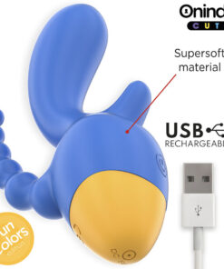 Explore a world of sensations with the ONINDER CUTE collection vibrator, designed for those seeking complete and precise stimulation. With its vibrant combination of dark blue and yellow base, this vibrator offers dual stimulation, providing pleasure to both the clitoris and anal area, in an ergonomic and comfortable design.