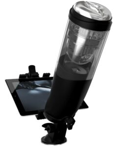 - Hands-free Operation – Use your Deluxe Mega-Batoras a hand-held stroker, or mount it to the suction cup bracket for a completely hands-free experience! Place your own mobile device in the convenient mobile device clamp for added visual stimulation.