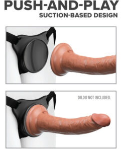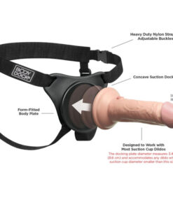 The patented Body Dock Universal Strap-On Harness System takes strap-on play to a whole new level! Its as simple as attaching the suction cup on your favorite dildo or vibrator to the docking plate, while the nylon straps easily adjust to fit most sizes and body types. No rings. No snaps. No hassle! Best of all, it works with most dildos on the market today, including some you may already own. Changing your favorite strap-on accessory has never been faster or easier!