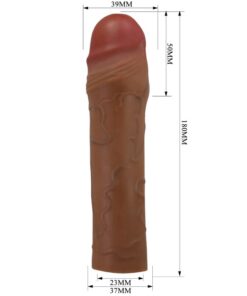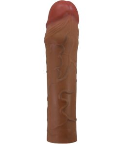 Increase the size of your penis with pleasure penis extender. Made of ultra realistic material for ultra lifelike pleasure, this sleeve gives you 2 extra inches of length, 35% girth. The external surface is textured with lifelike veins and features a bulbous head to ensure your lover experiences natural feeling sensations. A smooth internal canal hugs your erection for maximum contact and stimulation.