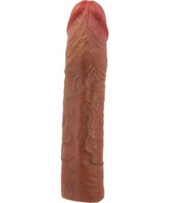 Increase the size of your penis with pleasure penis sleeve. Made of ultra realistic material for lifelike pleasure. The external surface is textured with lifelike veins and features a bulbous head to ensure your lover experiences natural feeling sensations. A smooth internal canal hugs your erection for maximum contact and stimulation.