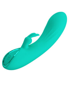 Elegant Pretty Love vibrator from the Extreme Series, presented in a fresh green color and designed to deliver an intense experience thanks to its powerful vibration system and integrated external stimulator.