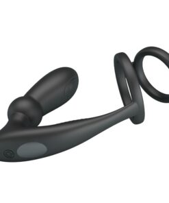 This cock ring with butt plug is a combined cock/ball ring with a securely attached vibro-butt plug. The combined rings hold the penis and testicles securely and can support the erection effectively because of the blood congestion effect. The inserted vibro-butt plug with its special ball design and 12 different vibration and double sided thumping modes can provide intense backdoor stimulation. It is covered in silicone that has a soft touch texture which feels great against the skin. Makes the penis strong and pleasures his backdoor at the same time! It can be recharged with the included USB cable.