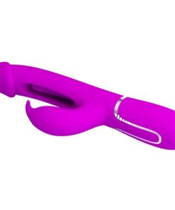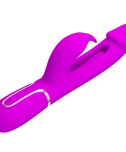 This rechargeable rabbit vibrator is blessed with two motors that you can control to give you full pleasures combinations that will leave you blissfully breathless. The powerfull rabbit adorning the clitoral arm tickle and tease your sensitive hotspot like nothing else. Added swinging tongue in the middle of the vibrator shaft provides you with extra sensation during the play and threres even a special climax button to boost all the motors to their most powerfull setting for a truly toe-curling ride. Top up your vibrators power with magnetic charging cable, which snaps into place on its own fot the ultimate user-friendly experience!