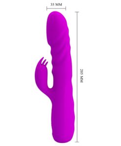 Enjoy the authentic penetration experience and beyond with the Pretty Love 4-Function Thrusting Rabbit Vibrator. This hearty bunny combines the iconic dual stimulation of the rabbit vibrator with G-spot activation and clitoral tickling. Press the button to customize your stimulation with 4 incredible rotation and thrust patterns to choose from. While you experience internal pleasure from the shaft, the attached rabbit ears focus on your clitoris and provide spectacular stimulation once the multi-function vibrator is activated. When you’re running low, simply plug the USB charging cable into your vibrator for the next time you need sweet relief.