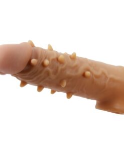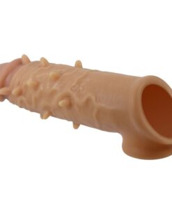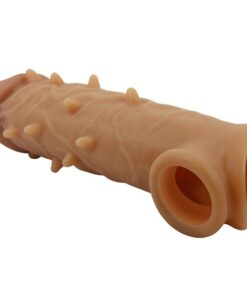 The case is made of skin-like liquid silicone for that ultra-realistic feel and is expertly sculpted to have a realistic look. This natural-feeling penis extension sleeve conforms to your erection with a comfortable, hollow shaft and testicle ring for a secure fit that won’t move during play. The thick sleeve walls and raised knots offer them even more stimulation with each thrust.