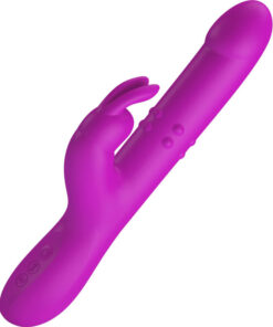 Rabbit Vibrator with Multi-Speed Vibration, Thrusting The rotation stimulates the vagina and clitoris at the same time! The Pretty Love rabbit vibrator has a pleasant texture and twists and turns deep inside the vagina while massaging the G-spot. The clitoris is stimulated at the same time by the flexible stimulator with vibrations. This pleasure program complete with multi-speed vibration, thrusting and rotation can be easily controlled with the control button. The vibrator fits perfectly to the female anatomy and is completely made of a velvety soft silicone material that feels great against the skin during play. Additionally, the vibrator can be recharged with the included USB cable.