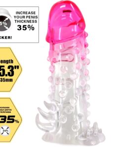 Not only that but the thin and flexible anal stimulator allows for three kinds of pleasure! This penis extension sleeve has a solid tip to give you that extra length when you want it.