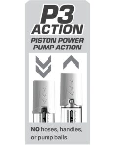 - Piston power pump action – In-line pump design means no hoses, handles, or pump balls needed to operate!