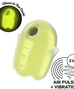 The Satisfyer Glowing Ghost features Satisfyers innovative air pulse technology that stimulates the clitoris completely without contact. You just have to place its opening around the clitoris and enjoy one of the 11 pressure wave programs. If you want even more stimulation, you can combine the Air Pulse technology with the vibration function, or use both functions independently, as you like!
