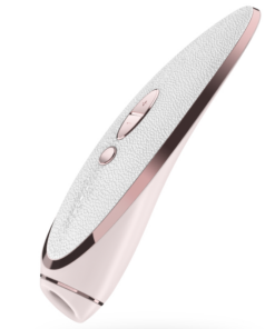 In supple and elegant fashion, the ring of ultra-soft, medical grade liquid silicone surrounds your pleasure bead and caresses it with the usual breathtaking Satisfyer pressure-wave stimulation. Its intuitive controls let you choose your favourites from 11 different intensity settings and enjoy the heavenly feeling of non-contact clitoral stimulation. The ergonomic shape of the Satisfyer Luxury Prêt-à -porter sits comfortably in your hand, while the refined upper in sensuously structured leather will make you feel like a queen. The rose gold-coloured elements made of precious metal and the silky, matte body in tender pink complete the luxurious design perfectly.