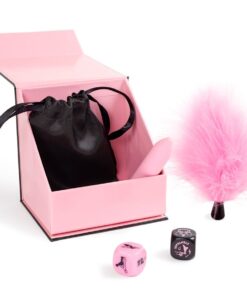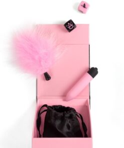 The Secret Pleasures Box is the perfect kit for gifting moments of pleasure to your partner. Its content is complete and exciting: not only will you experience delightful vibrations with its pink bullet vibrator, but you can also enjoy seductive caresses with its soft-touch pink feather tickler and have fun with its two dice, each offering very different playful options.