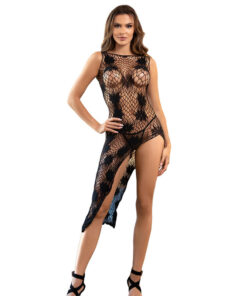 - Style: Fishnet bodysuit with a design that imitates a split dress.