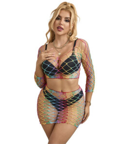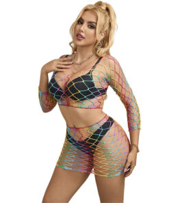 SUBBLIME – 952440 2-PIECE FISHNET SET LONG SLEEVE RAINBOW ONE SIZE