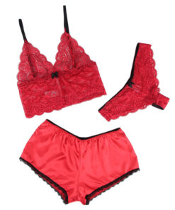 SUBBLIME – 953898 SILK AND LACE NIGHTGOWN + PANTIES RED S/M