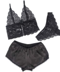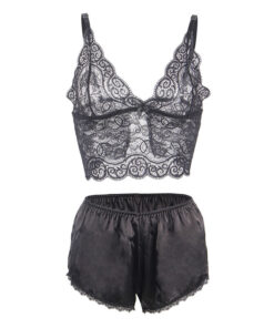 SUBBLIME – 953928 SILK AND LACE NIGHTGOWN + PANTIES BLACK L/XL