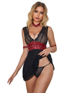 SUBBLIME – 954437 LACE BONDAGE DRESS BLACK L/XL