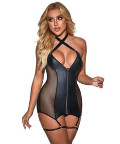 SUBBLIME – 954451 SEXY MESH DRESS LEATHER BLACK L/XL