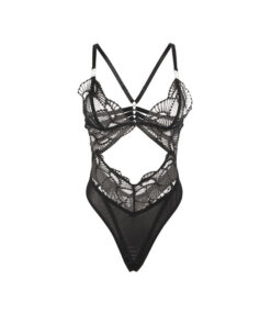 SUBBLIME – 955212 TRANSPARENT BODYSUIT WITH BLACK HOLLOW LACE S/M