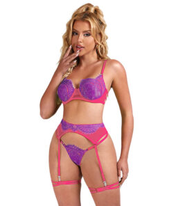 SUBBLIME – 955359 SET OF BRA WITH LACE AND GARTER LINKS PINK AND PURPLE S/M