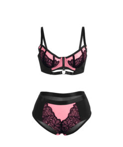 SUBBLIME – 955588 PINK PATENT LEATHER MESH ZIPPER BRA SET L/XL