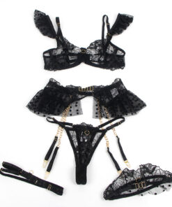 SUBBLIME – 957483 BLACK LACE BRA AND GARTER SET S/M