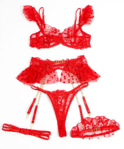 SUBBLIME – 957506 LACE BRA AND GARTER SET RED S/M