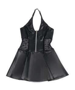 SUBBLIME – 957704 LACE ZIPPER LEATHER DRESS BLACK S/M