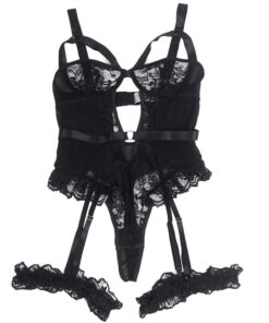 - Garter with Leg Rings: The integrated garters with leg rings not only add a touch of sensuality, but also ensure a perfect and comfortable fit, keeping the teddy in place. its place.