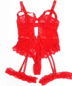 - Garter with Leg Rings: The integrated garters with leg rings not only add a touch of sensuality, but also ensure a perfect and comfortable fit, keeping the teddy in place. its place.